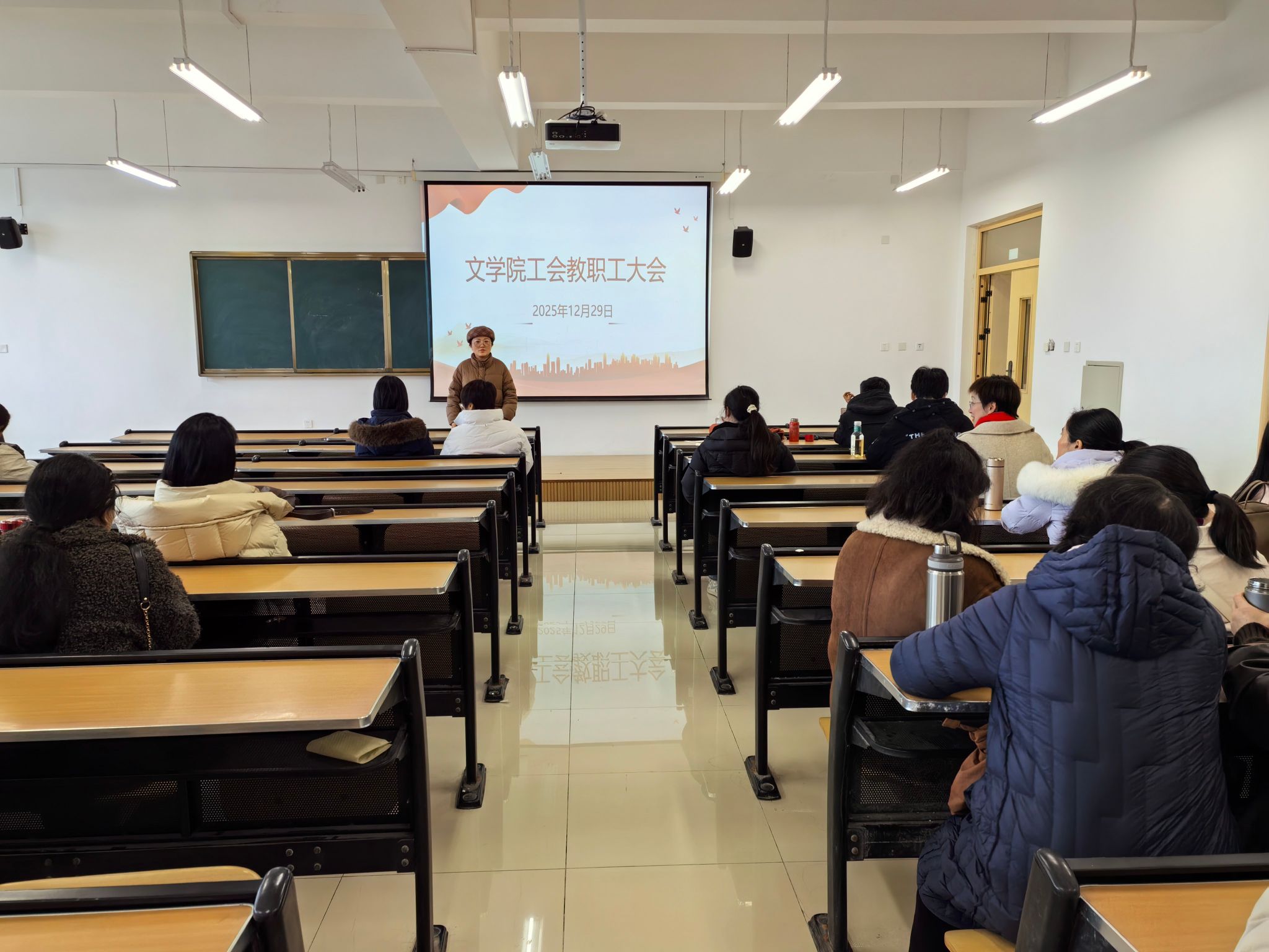 12月29日,文学院2025年工会教职工大会在弘文楼502会议室举行。